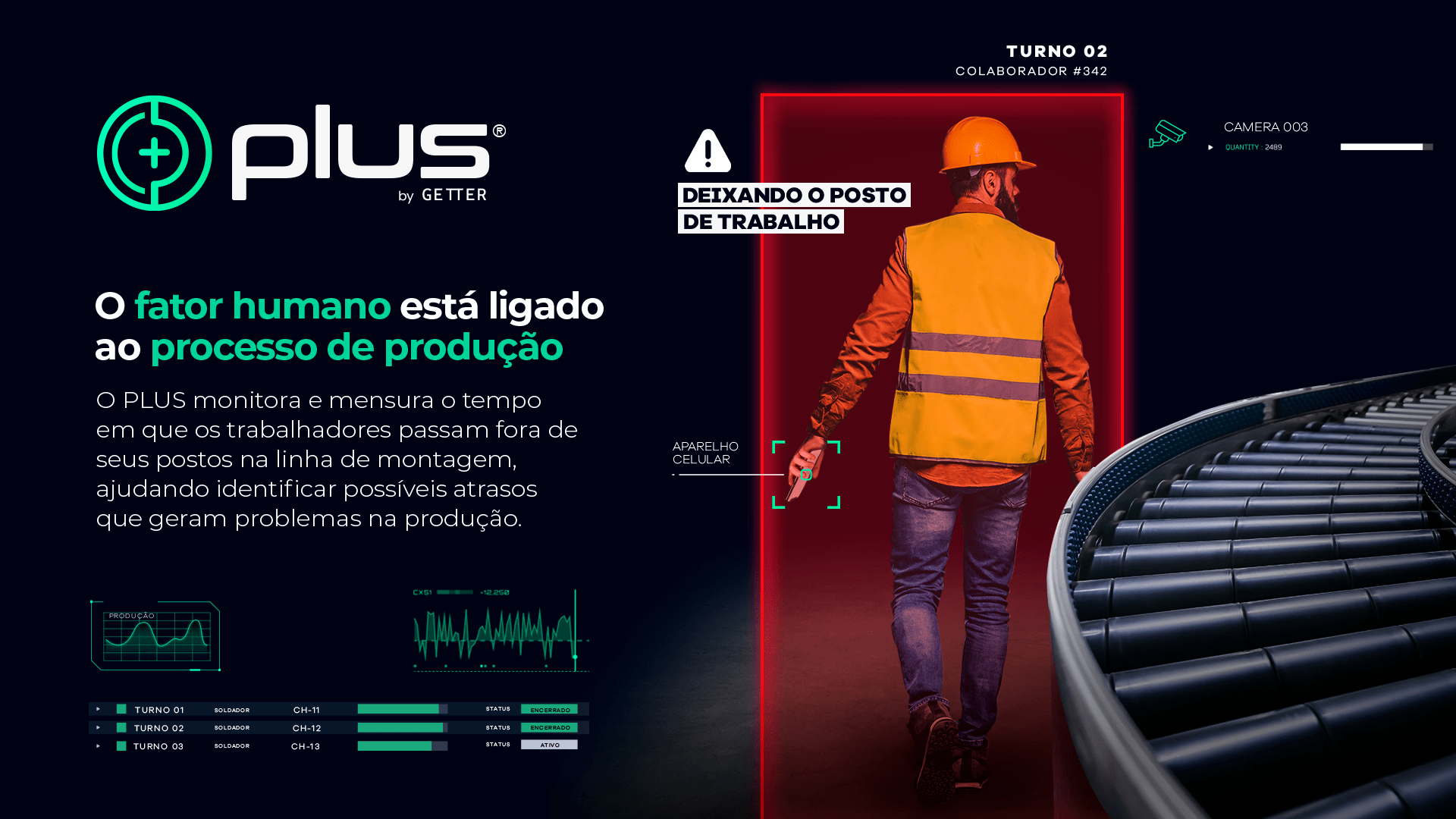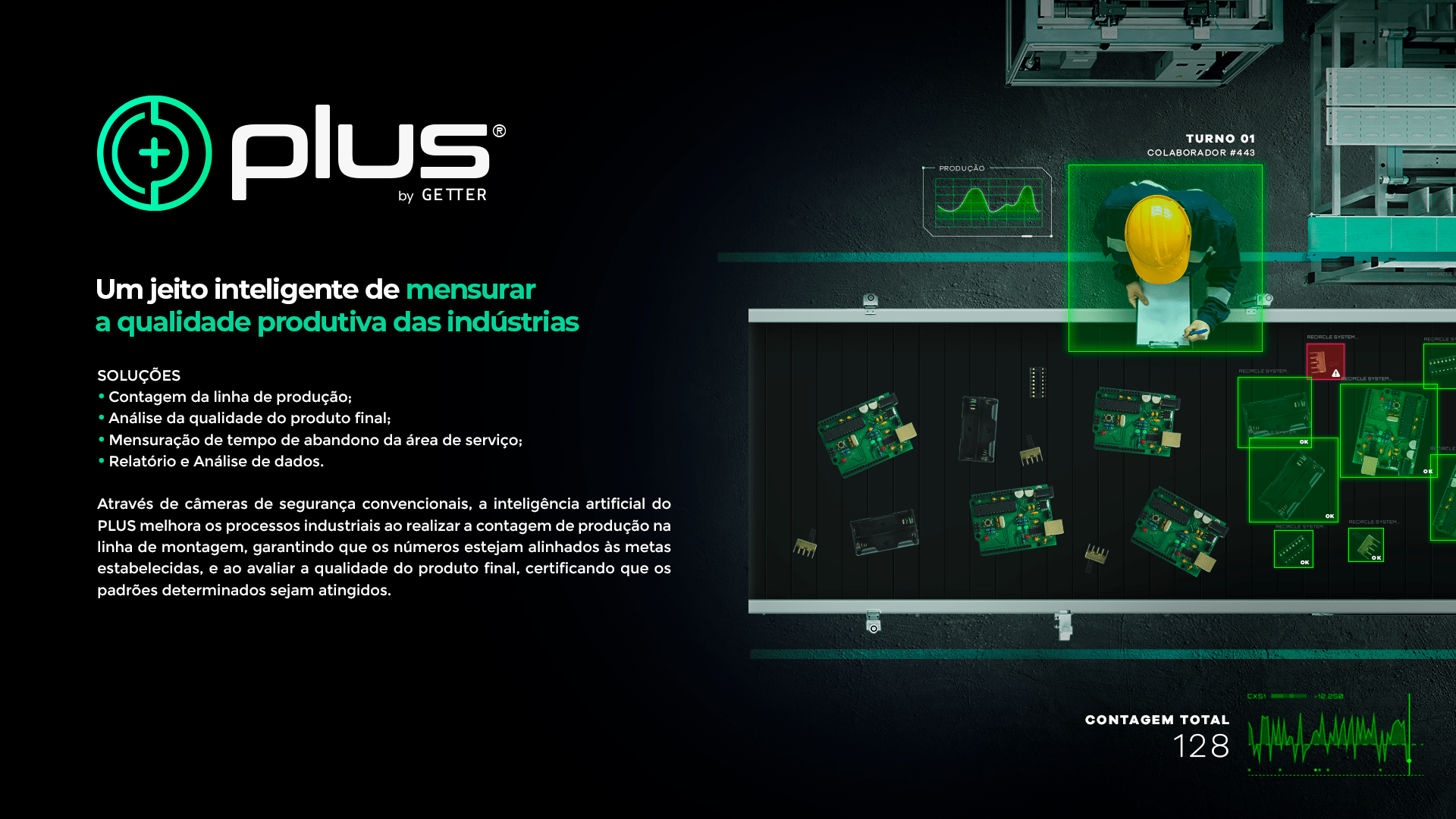 Através de câmeras de segurança convencionais, a inteligência artificial do PLUS melhora os processos industriais ao realizar a contagem de produção na linha de montagem, garantindo que os números estejam alinhados às metas estabelecidas.